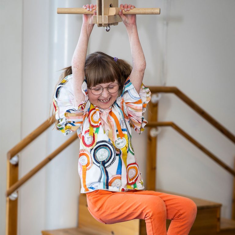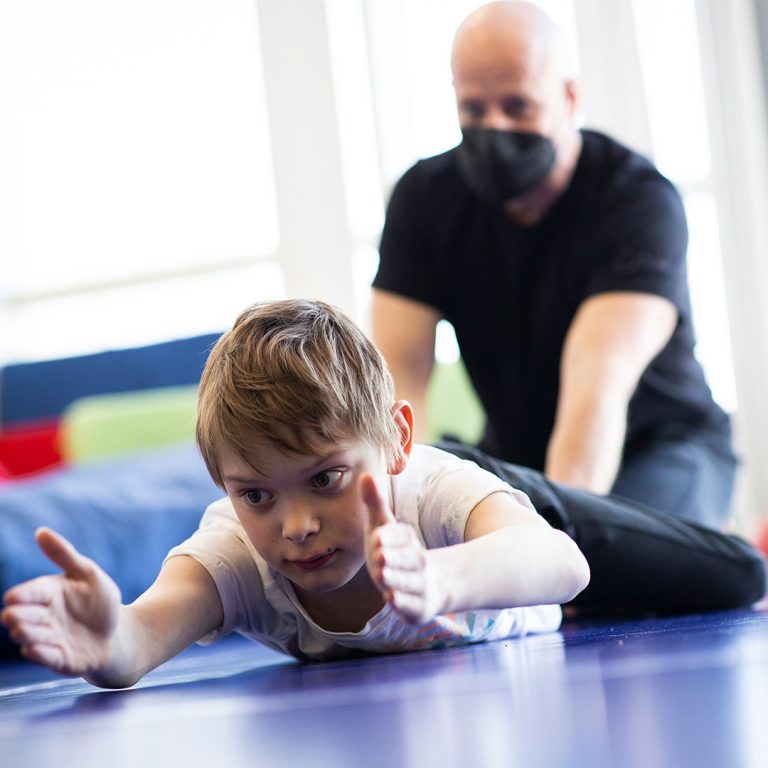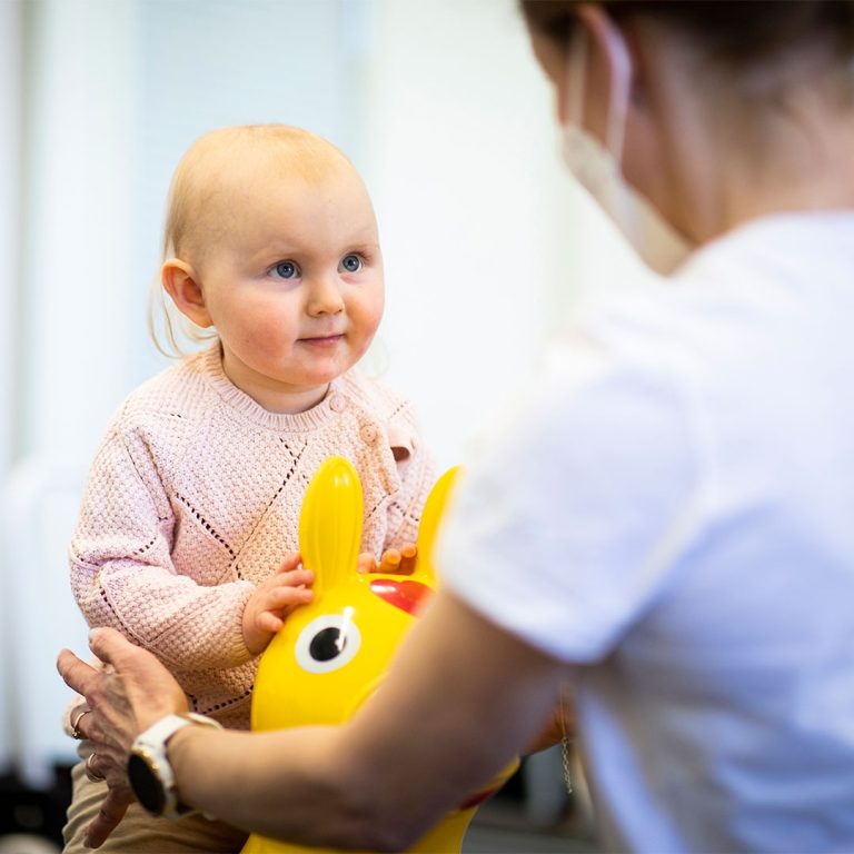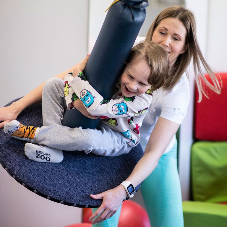 Lapsen on mukavaa harjoitella esim. tasapaino- ja liikkumistaitoja innostavassa ympäristössä tutun terapeutin/turvallisen aikuisen kanssa.