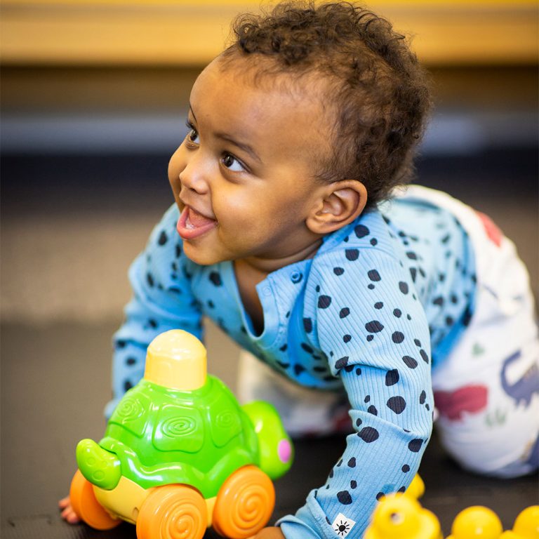 Pienen lapsen sensomotorinen kehitys etenee leikin kautta. Konttaamisen vuorotahtinen liike harjoittaa muun muassa aivopuoliskojen yhteistyötä.